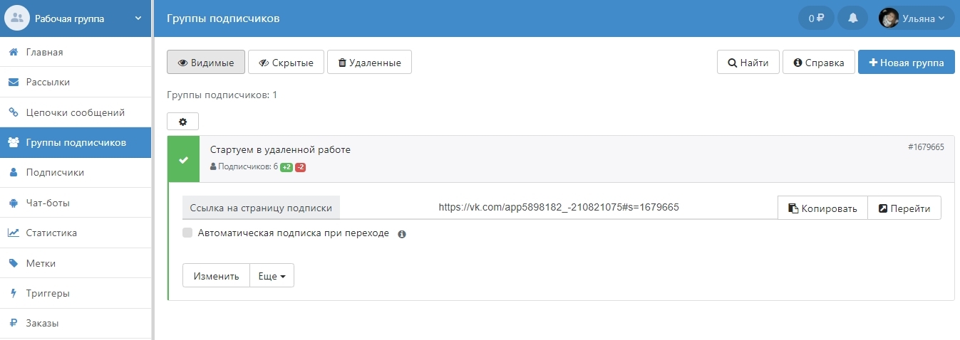 Создаю группу ВК и бота Телеграм, добавляю эти каналы в BotHelp.